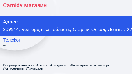 Camidy, магазин по адресу 309514, Белгородская область, Старый Оскол, Ленина, 22 в дальнейшем Организация, размещена в следующих категориях: