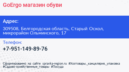 GoErgo, магазин обуви по адресу 309508, Белгородская область, Старый Оскол, микрорайон Ольминского, 17 в дальнейшем Организация, размещена в следующих категориях: