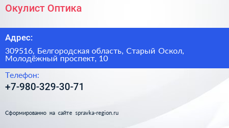 Окулист Оптика по адресу 309516, Белгородская область, Старый Оскол, Молодёжный проспект, 10 в дальнейшем Организация, размещена в следующих категориях: