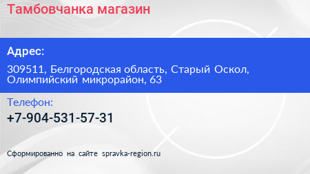 Тамбовчанка, магазин по адресу 309511, Белгородская область, Старый Оскол, Олимпийский микрорайон, 63 в дальнейшем Организация, размещена в следующих категориях: