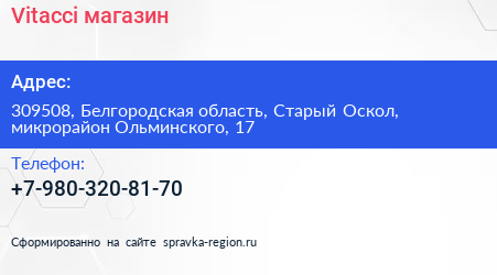 Vitacci, магазин по адресу 309508, Белгородская область, Старый Оскол, микрорайон Ольминского, 17 в дальнейшем Организация, размещена в следующих категориях: