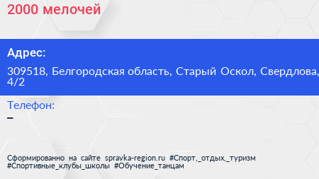 2000 мелочей по адресу 309518, Белгородская область, Старый Оскол, Свердлова, 4/2 в дальнейшем Организация, размещена в следующих категориях: