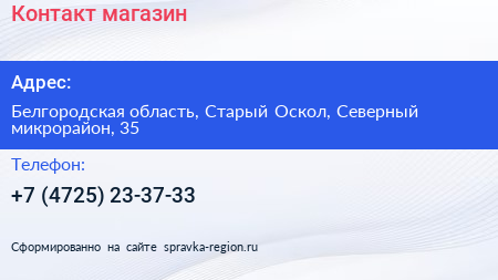 Контакт, магазин по адресу Белгородская область, Старый Оскол, Северный микрорайон, 35 в дальнейшем Организация, размещена в следующих категориях: