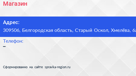 Магазин по адресу 309506, Белгородская область, Старый Оскол, Хмелёва, 6а в дальнейшем Организация, размещена в следующих категориях: