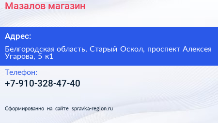 Мазалов, магазин по адресу Белгородская область, Старый Оскол, проспект Алексея Угарова, 5 к1 в дальнейшем Организация, размещена в следующих категориях: