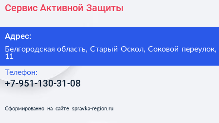 Сервис Активной Защиты по адресу Белгородская область, Старый Оскол, Соковой переулок, 11 в дальнейшем Организация, размещена в следующих категориях: