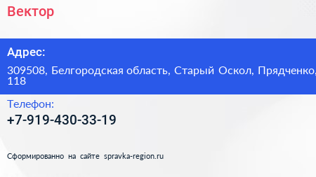 Вектор по адресу 309508, Белгородская область, Старый Оскол, Прядченко, 118 в дальнейшем Организация, размещена в следующих категориях: