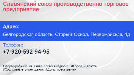 Славянский союз, производственно-торговое предприятие по адресу Белгородская область, Старый Оскол, Первомайская, 4д в дальнейшем Организация, размещена в следующих категориях: