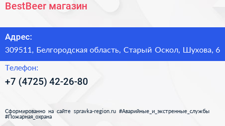 BestBeer, магазин по адресу 309511, Белгородская область, Старый Оскол, Шухова, 6 в дальнейшем Организация, размещена в следующих категориях: