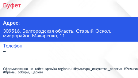 Буфет по адресу 309516, Белгородская область, Старый Оскол, микрорайон Макаренко, 11 в дальнейшем Организация, размещена в следующих категориях:
