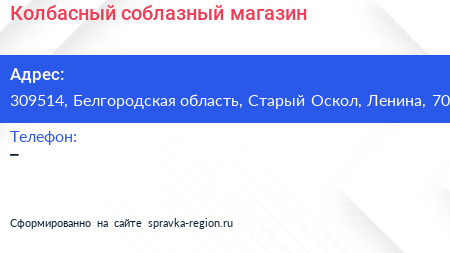 Колбасный соблазный, магазин по адресу 309514, Белгородская область, Старый Оскол, Ленина, 70 в дальнейшем Организация, размещена в следующих категориях:
