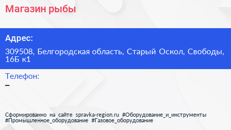 Магазин рыбы по адресу 309508, Белгородская область, Старый Оскол, Свободы, 16Б к1 в дальнейшем Организация, размещена в следующих категориях: