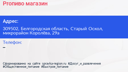 Proпиво, магазин по адресу 309502, Белгородская область, Старый Оскол, микрорайон Королёва, 29а в дальнейшем Организация, размещена в следующих категориях: