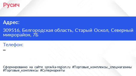 Русич по адресу 309516, Белгородская область, Старый Оскол, Северный микрорайон, 7Б в дальнейшем Организация, размещена в следующих категориях: