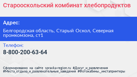 Старооскольский, комбинат хлебопродуктов по адресу Белгородская область, Старый Оскол, Северная промкомзона, ст1 в дальнейшем Организация, размещена в следующих категориях: