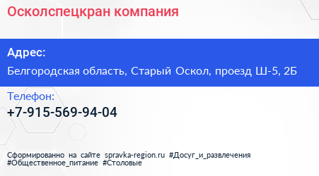 Осколспецкран, компания по адресу Белгородская область, Старый Оскол, проезд Ш-5, 2Б в дальнейшем Организация, размещена в следующих категориях: