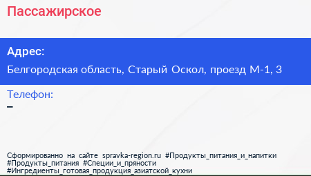 Пассажирское по адресу Белгородская область, Старый Оскол, проезд М-1, 3 в дальнейшем Организация, размещена в следующих категориях: