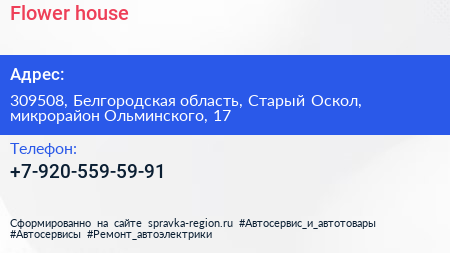 Flower house по адресу 309508, Белгородская область, Старый Оскол, микрорайон Ольминского, 17 в дальнейшем Организация, размещена в следующих категориях:
