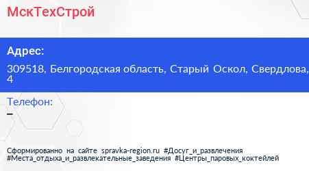 МскТехСтрой по адресу 309518, Белгородская область, Старый Оскол, Свердлова, 4 в дальнейшем Организация, размещена в следующих категориях: