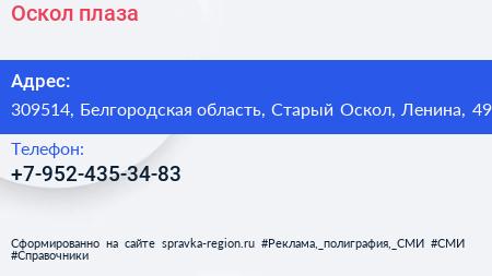 Оскол плаза по адресу 309514, Белгородская область, Старый Оскол, Ленина, 49 в дальнейшем Организация, размещена в следующих категориях: