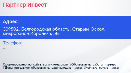 Партнер-Инвест по адресу 309502, Белгородская область, Старый Оскол, микрорайон Королёва, 5Б в дальнейшем Организация, размещена в следующих категориях: