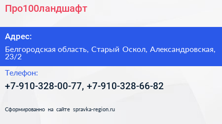 Про100ландшафт по адресу Белгородская область, Старый Оскол, Александровская, 23/2 в дальнейшем Организация, размещена в следующих категориях: