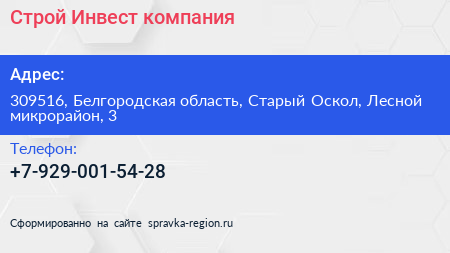 Строй-Инвест, компания по адресу 309516, Белгородская область, Старый Оскол, Лесной микрорайон, 3 в дальнейшем Организация, размещена в следующих категориях: