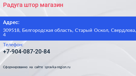 Радуга штор, магазин по адресу 309518, Белгородская область, Старый Оскол, Свердлова, 4 в дальнейшем Организация, размещена в следующих категориях: