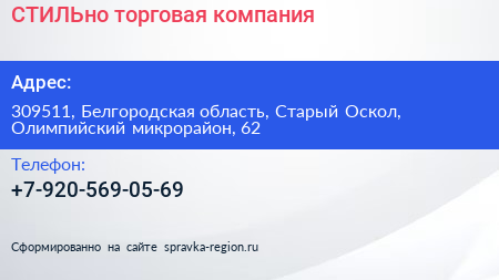 СТИЛЬно, торговая компания по адресу 309511, Белгородская область, Старый Оскол, Олимпийский микрорайон, 62 в дальнейшем Организация, размещена в следующих категориях:
