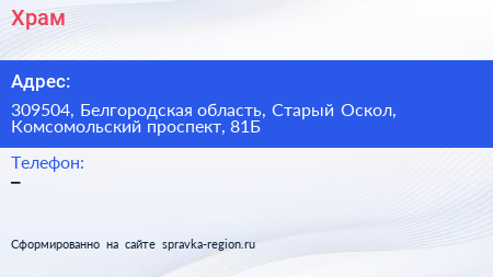 Храм по адресу 309504, Белгородская область, Старый Оскол, Комсомольский проспект, 81Б в дальнейшем Организация, размещена в следующих категориях: