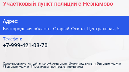 Участковый пункт полиции, с. Незнамово по адресу Белгородская область, Старый Оскол, Центральная, 5 в дальнейшем Организация, размещена в следующих категориях:
