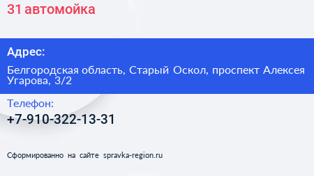 31, автомойка по адресу Белгородская область, Старый Оскол, проспект Алексея Угарова, 3/2 в дальнейшем Организация, размещена в следующих категориях: