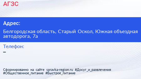 АГЗС по адресу Белгородская область, Старый Оскол, Южная объездная автодорога, 7а в дальнейшем Организация, размещена в следующих категориях: