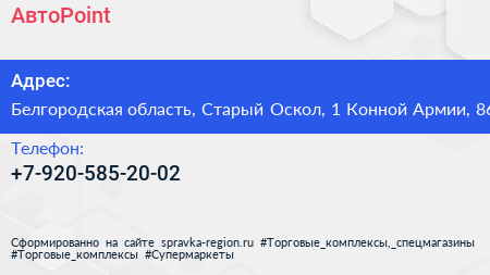 АвтоPoint по адресу Белгородская область, Старый Оскол, 1 Конной Армии, 86 в дальнейшем Организация, размещена в следующих категориях: