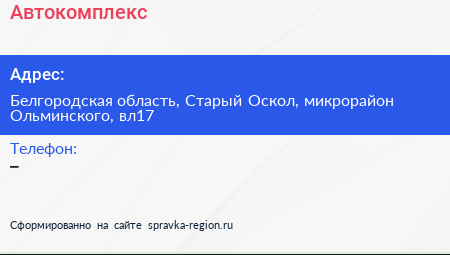 Автокомплекс по адресу Белгородская область, Старый Оскол, микрорайон Ольминского, вл17 в дальнейшем Организация, размещена в следующих категориях: