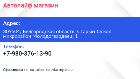 Автолайф, магазин по адресу 309504, Белгородская область, Старый Оскол, микрорайон Молодогвардеец, 1 в дальнейшем Организация, размещена в следующих категориях: