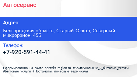Автосервис по адресу Белгородская область, Старый Оскол, Северный микрорайон, 45Б в дальнейшем Организация, размещена в следующих категориях: