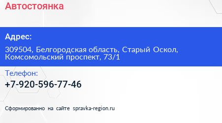 Автостоянка по адресу 309504, Белгородская область, Старый Оскол, Комсомольский проспект, 73/1 в дальнейшем Организация, размещена в следующих категориях: