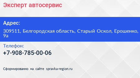 Эксперт, автосервис по адресу 309511, Белгородская область, Старый Оскол, Ерошенко, 9а в дальнейшем Организация, размещена в следующих категориях: