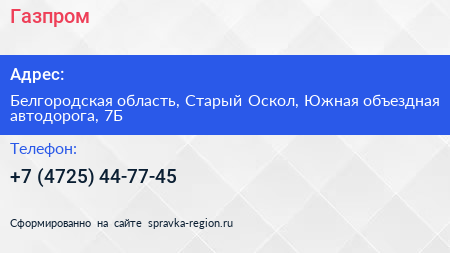 Газпром по адресу Белгородская область, Старый Оскол, Южная объездная автодорога, 7Б в дальнейшем Организация, размещена в следующих категориях: