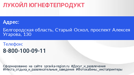 ЛУКОЙЛ-ЮГНЕФТЕПРОДУКТ по адресу Белгородская область, Старый Оскол, проспект Алексея Угарова, 130 в дальнейшем Организация, размещена в следующих категориях: