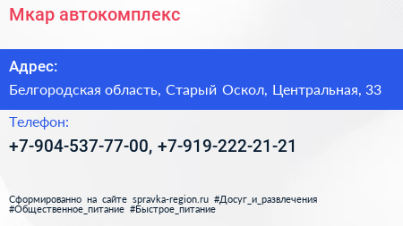 Мкар, автокомплекс по адресу Белгородская область, Старый Оскол, Центральная, 33 в дальнейшем Организация, размещена в следующих категориях: