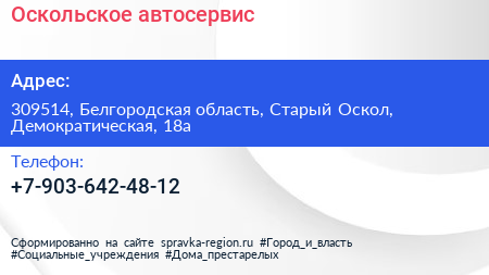 Оскольское, автосервис по адресу 309514, Белгородская область, Старый Оскол, Демократическая, 18а в дальнейшем Организация, размещена в следующих категориях: