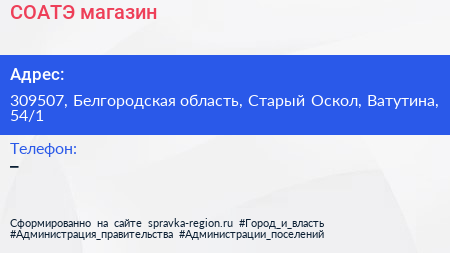 СОАТЭ, магазин по адресу 309507, Белгородская область, Старый Оскол, Ватутина, 54/1 в дальнейшем Организация, размещена в следующих категориях: