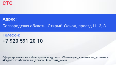 СТО по адресу Белгородская область, Старый Оскол, проезд Ш-3, 8 в дальнейшем Организация, размещена в следующих категориях: