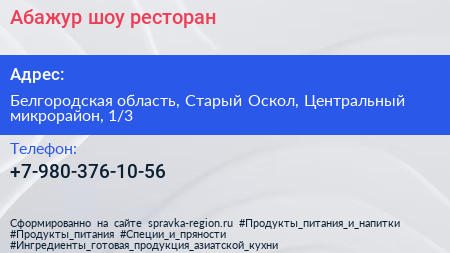 Абажур, шоу-ресторан по адресу Белгородская область, Старый Оскол, Центральный микрорайон, 1/3 в дальнейшем Организация, размещена в следующих категориях: