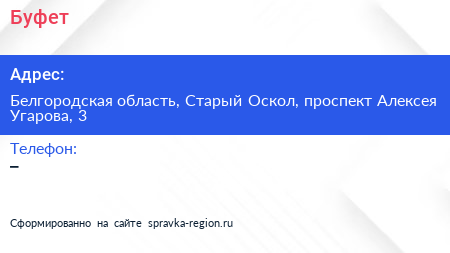 Буфет по адресу Белгородская область, Старый Оскол, проспект Алексея Угарова, 3 в дальнейшем Организация, размещена в следующих категориях: