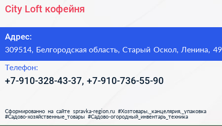 City Loft, кофейня по адресу 309514, Белгородская область, Старый Оскол, Ленина, 49 в дальнейшем Организация, размещена в следующих категориях: