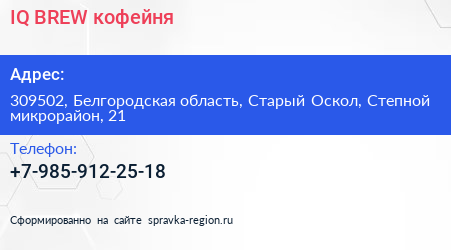 IQ BREW, кофейня по адресу 309502, Белгородская область, Старый Оскол, Степной микрорайон, 21 в дальнейшем Организация, размещена в следующих категориях: