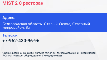 MIST 2.0, ресторан по адресу Белгородская область, Старый Оскол, Северный микрорайон, 8а в дальнейшем Организация, размещена в следующих категориях: